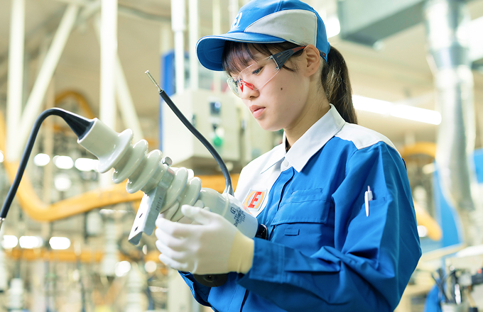 製造部で、円筒型カットアウトの組立を担当しています。これは電柱や配電設備を過電流から保護する安全装置です。