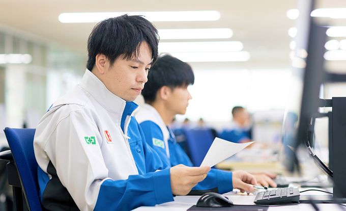 職場は和気あいあいとした雰囲気で、年齢の近い社員も多く親しみやすい環境です。日々の会話も活発で、気軽に相談や意見交換ができるため、安心して業務に取り組めます。実は設計業務では、製造現場や管理職から意見やノウハウを聞いたり、資材担当とコスト面を相談したりと、他部署との情報交換が日常的にあります。雰囲気が良く、コミュニケーションを取りやすいエナジーサポートの環境は、設計業務のクオリティを下支えしていると感じます。